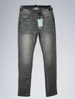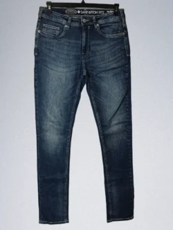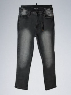 - Design: Five-pocket styling, zip fly, button closure