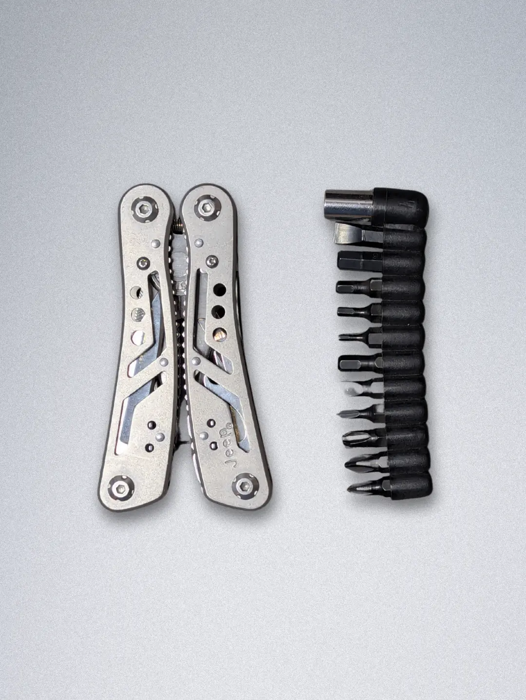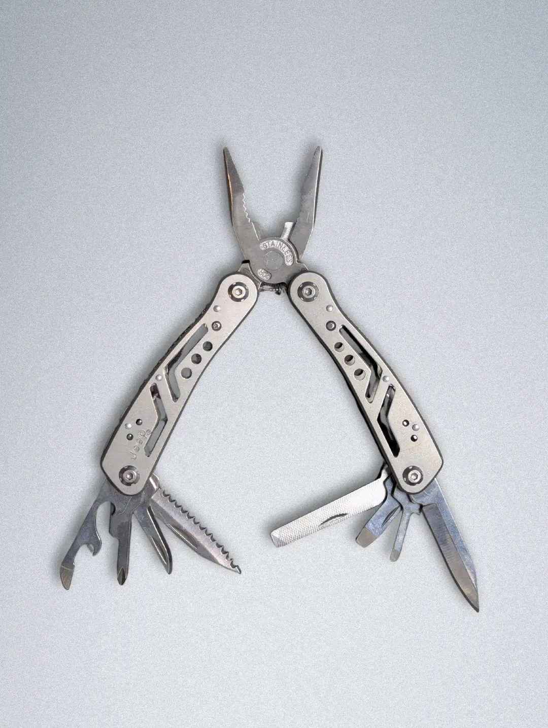Stay prepared for any situation with the Jeep 24-in-1 Multi Tool Plier, crafted from high-quality stainless steel for maximum strength, rust resistance, and long-lasting performance. Designed for adventurers, DIYers, and Jeep enthusiasts, this multitool packs 24 essential functions into one compact, foldable design.
